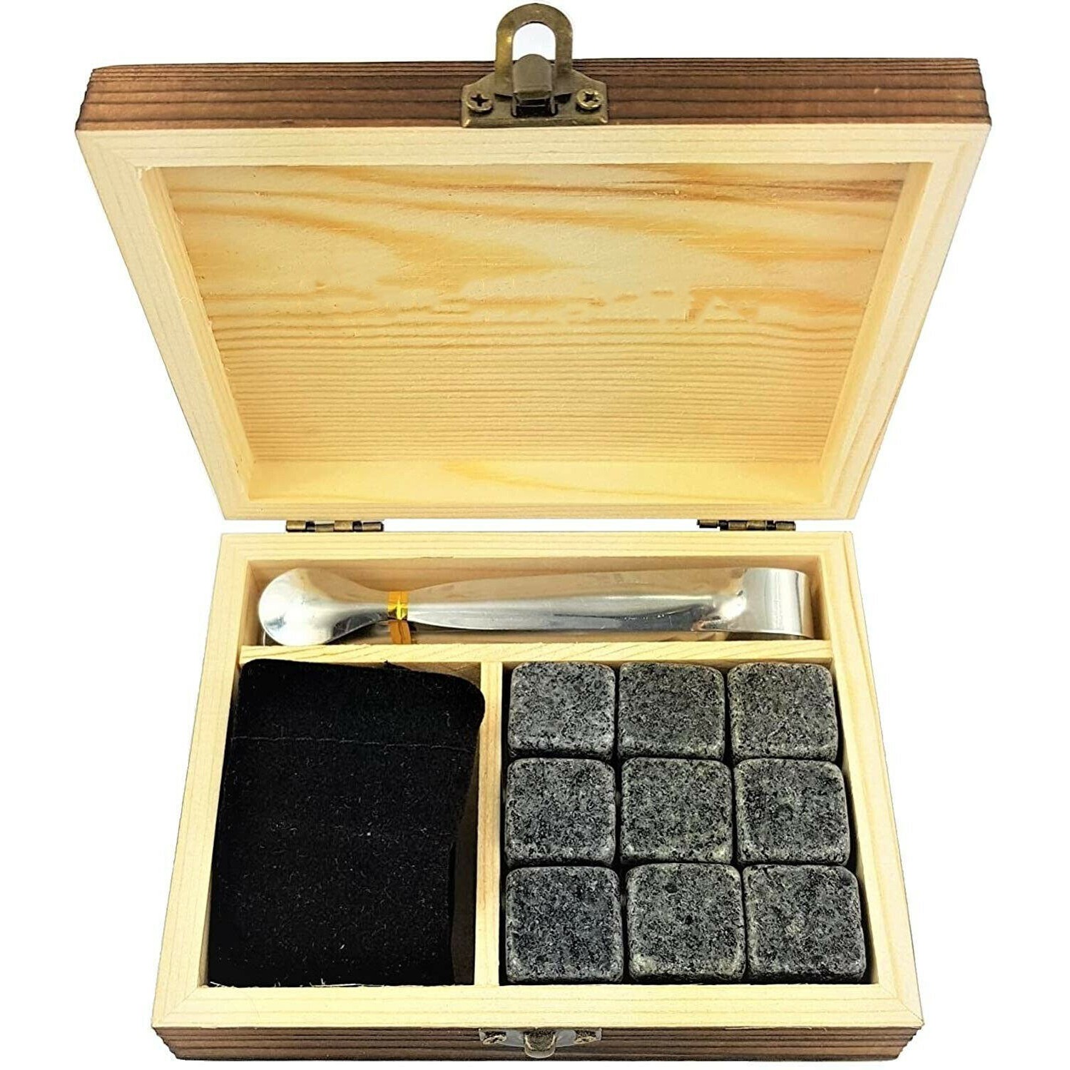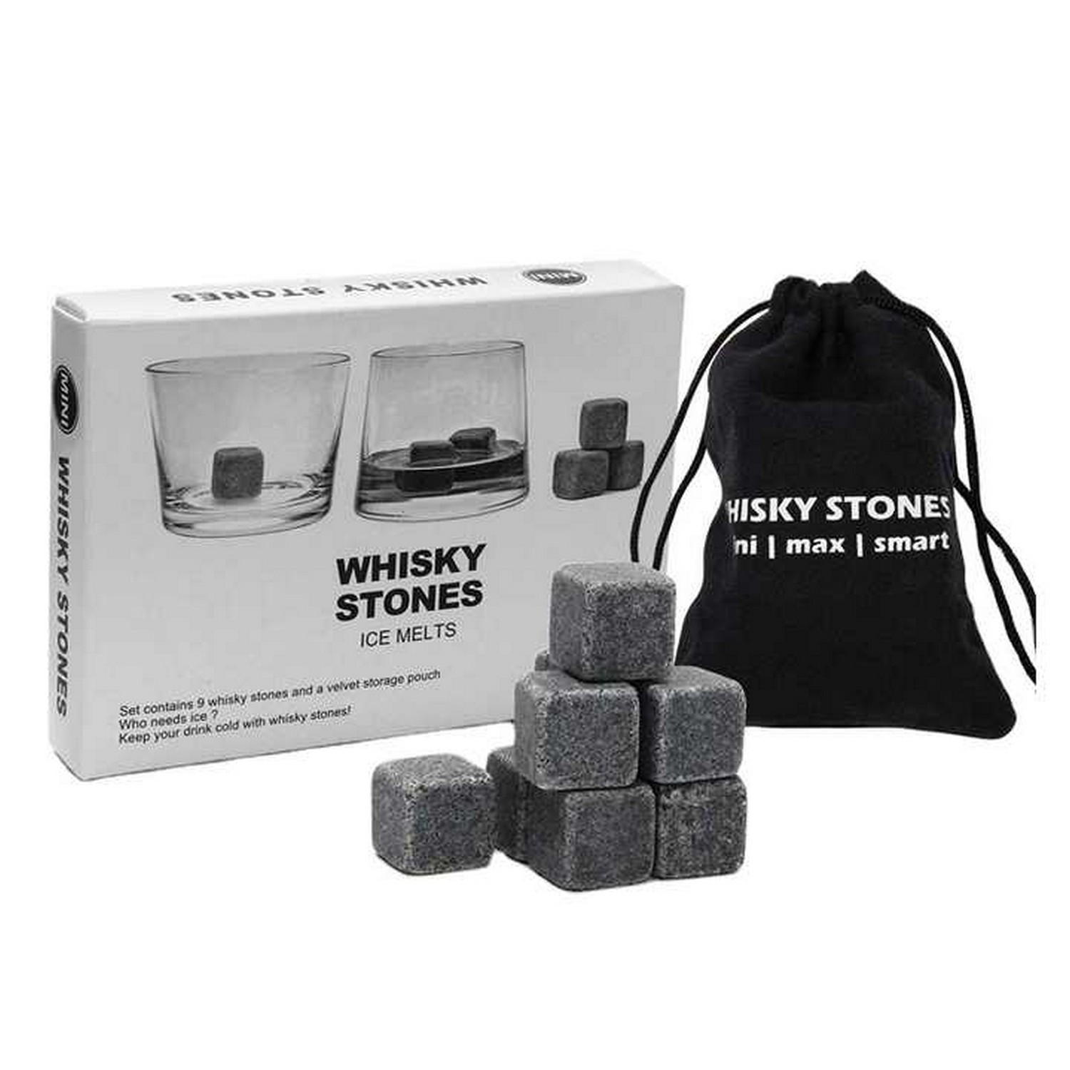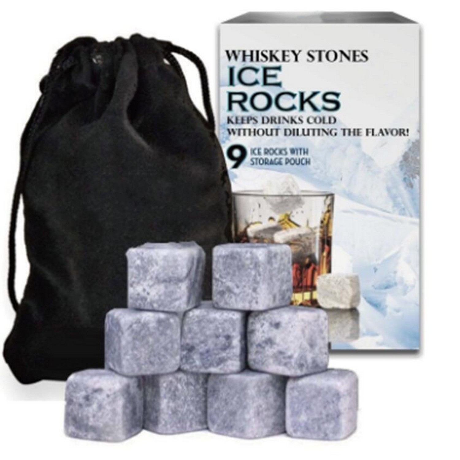 IBARLOM Deep Gray Granite Whiskey Stones, Ice Cube Rocks, Set of 9 Reusable Whiskey Wine & Beverage Chilling Rocks with Velvet Gift Bag