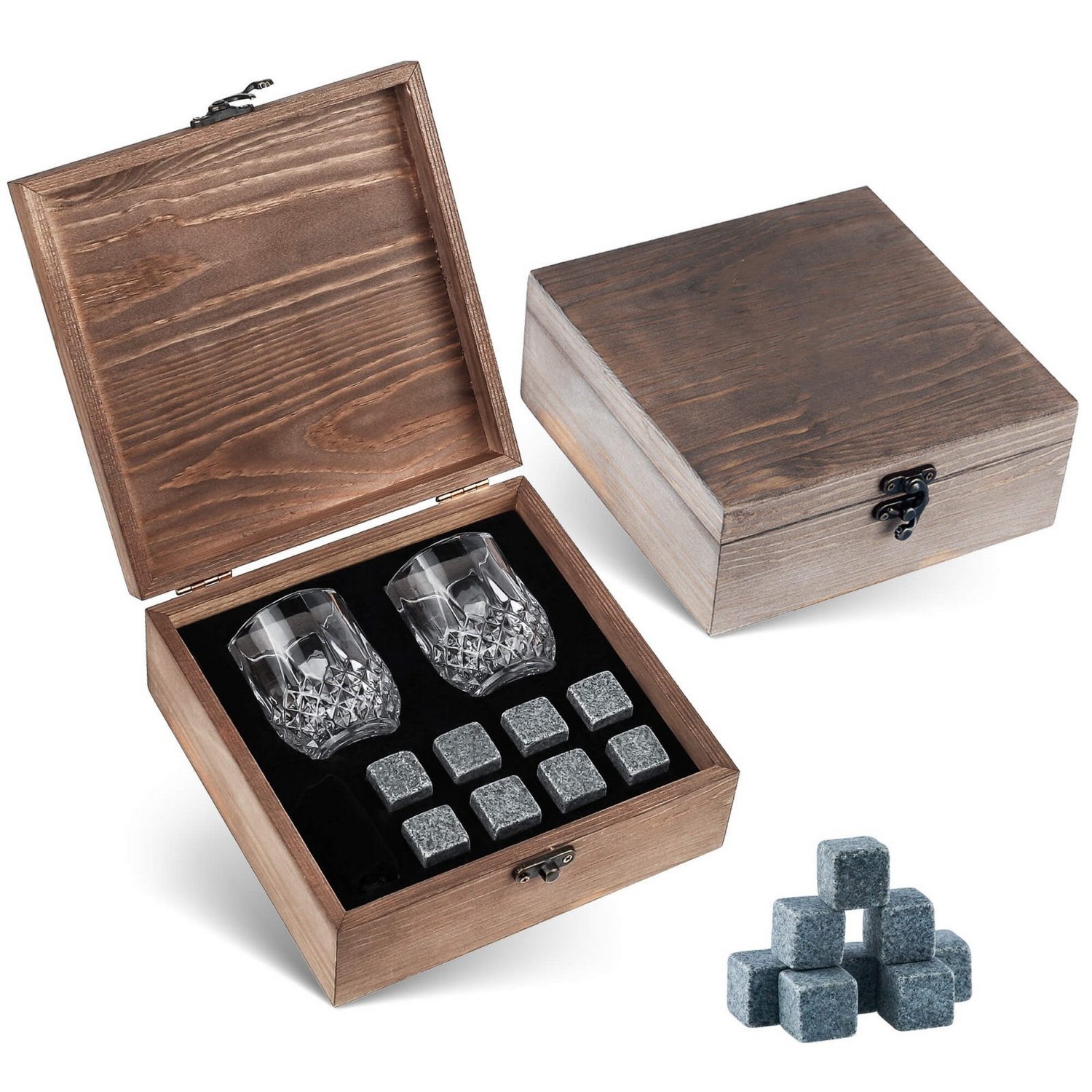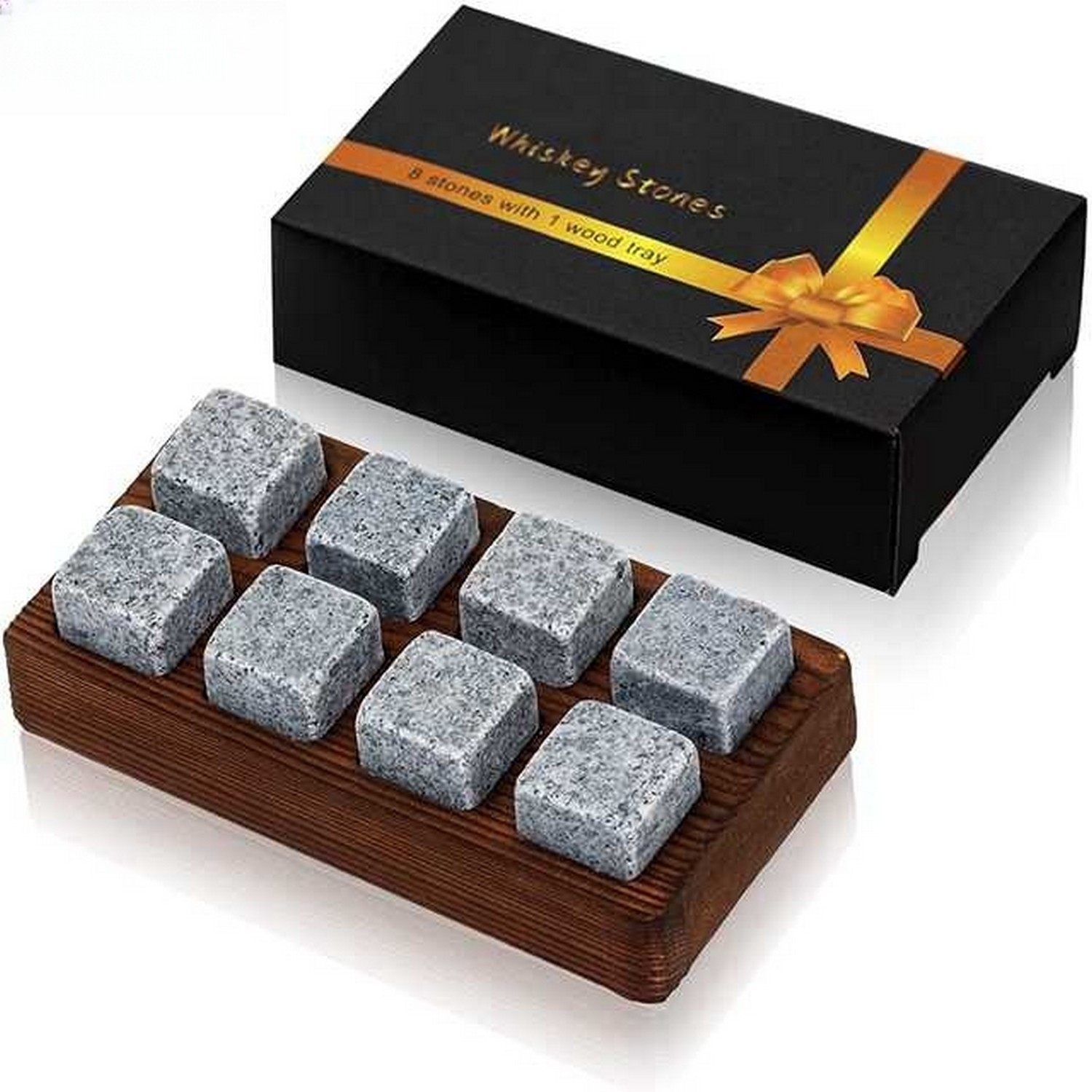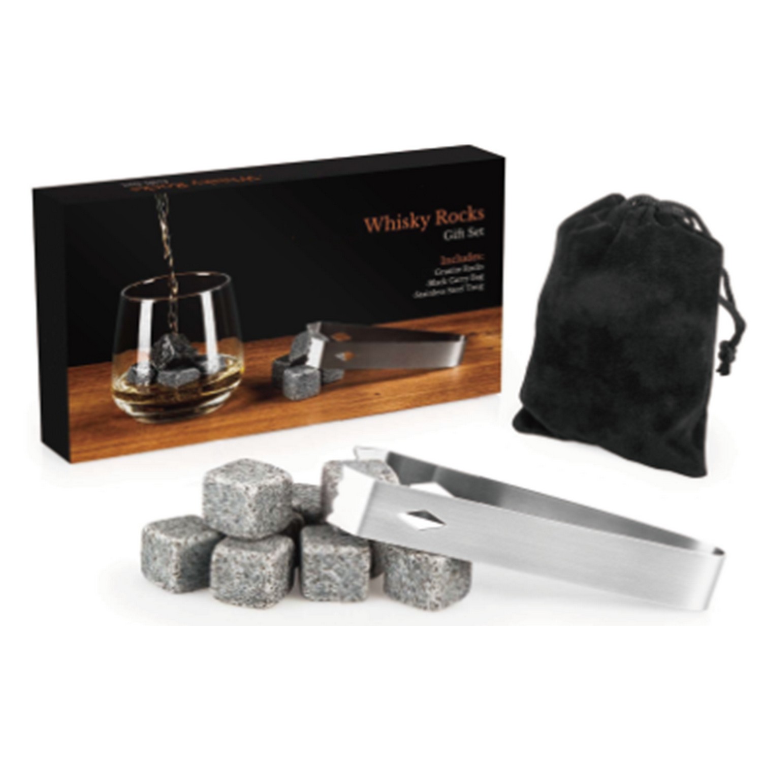 IBARLOM Deep Gray Granite Whiskey Stones, Ice Cube Rocks, Set of 9 Reusable Whiskey Wine & Beverage Chilling Rocks with Velvet Gift Bag
