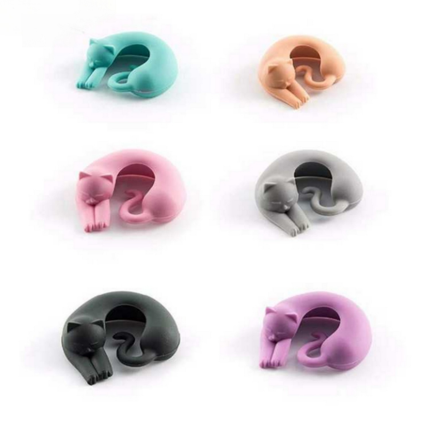 IBARLOM 6 Pcs Wine Glass Charms Creative Wine Glass Markers Funny Silicone Cat Wine Cup Labels Reusable Drink Bottle Logo Sticker