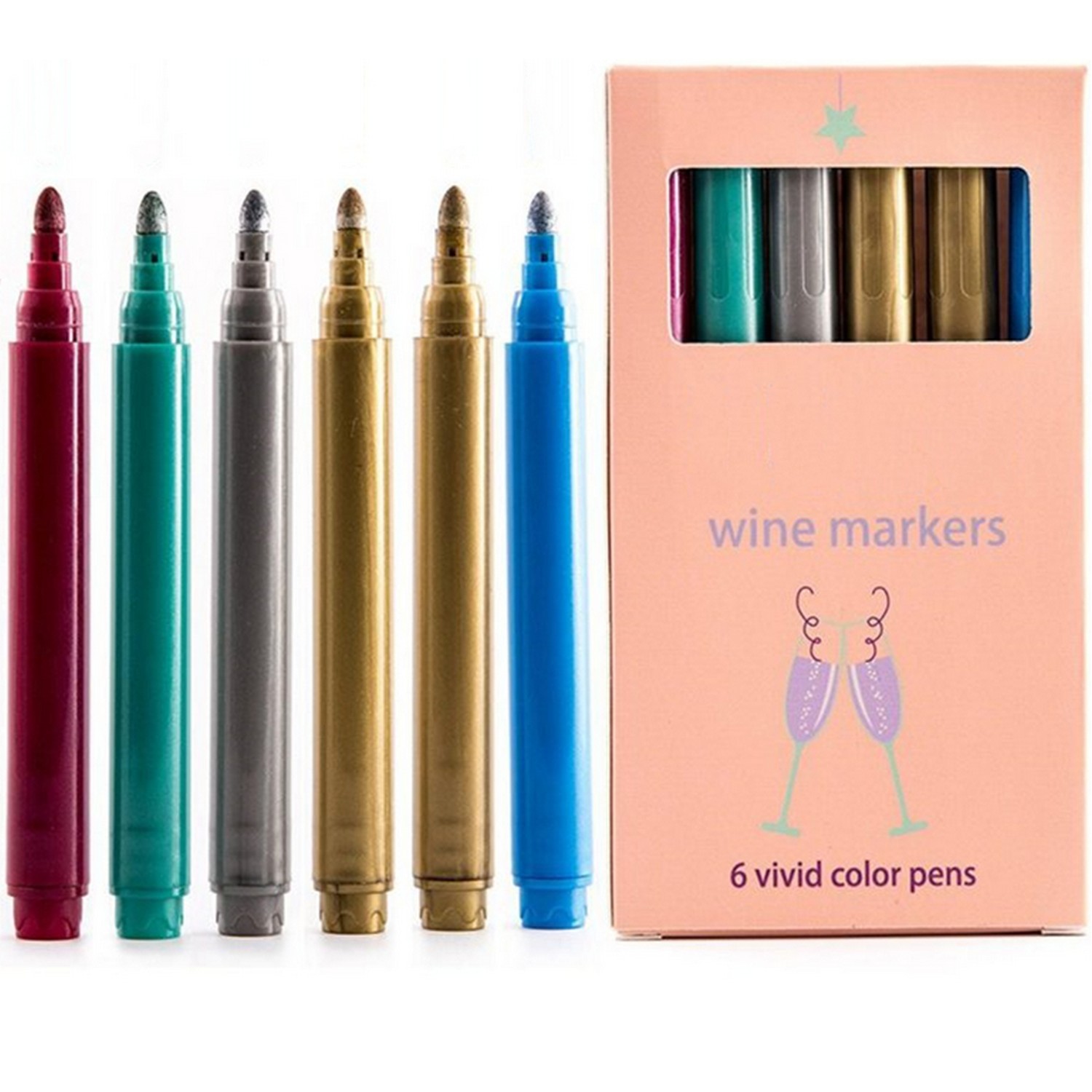IBARLOM Wine Glass Markers - Metallic Colors 10 Pens Pack - Wine Charms Alternative
