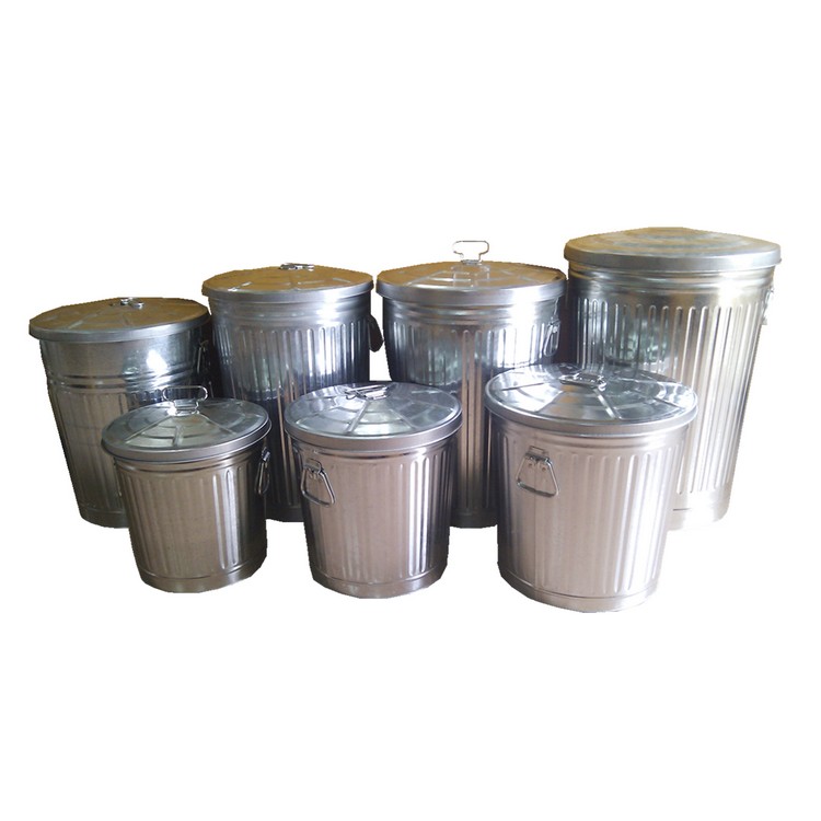 IBARLOM Customized Classic Design Round Shape Galvanized Waste Bin Handmade Grey Color Medium Size Tin Garbage Trash Can for sale