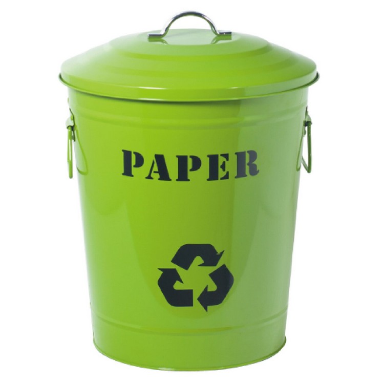 IBARLOM Metal Waste Bin Simple Waste Can Paper Bins Double Layer Cylindrical Recycling Bin Rubbish Trash Can with Shake Lid contain
